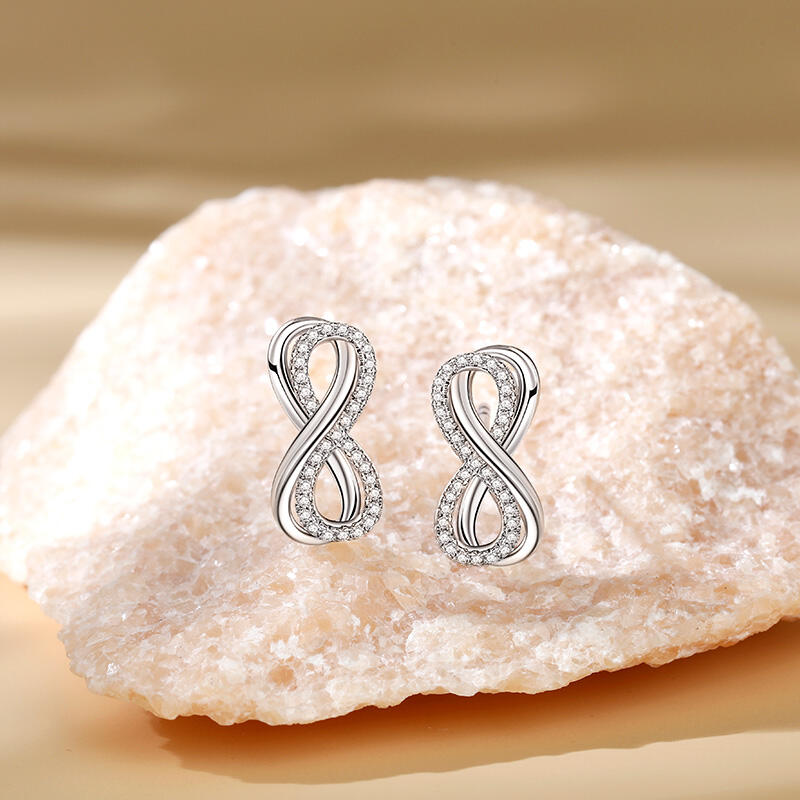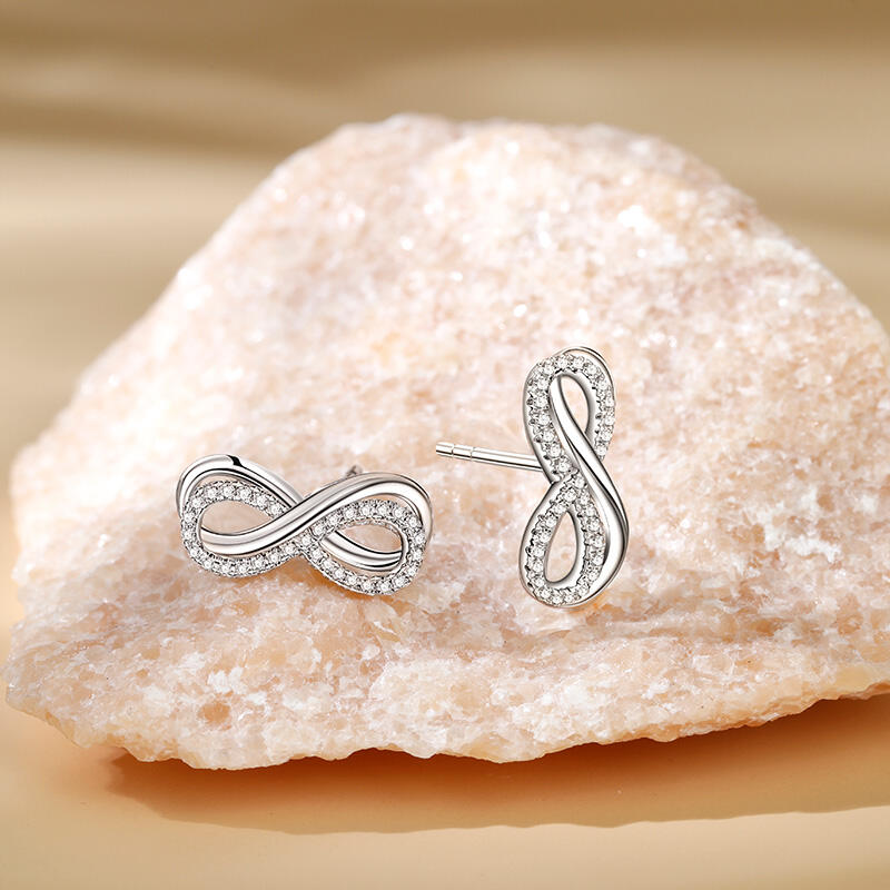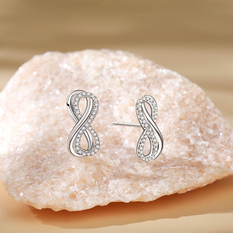 Jeulia "Infinity Love" Round Cut Sterling Silver Stud Earrings