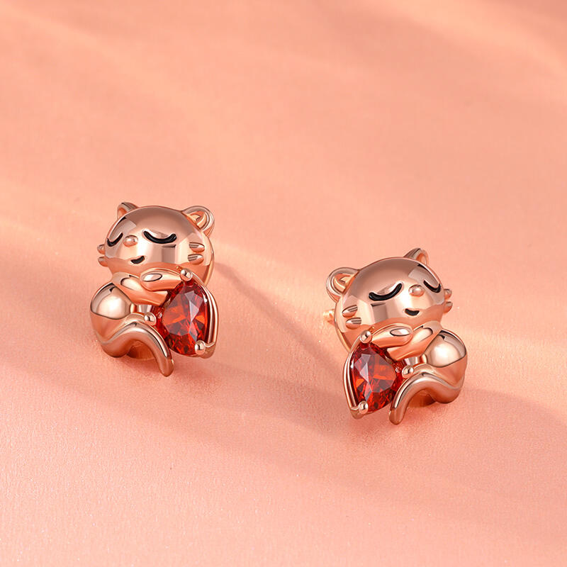 القطط هي رموز قديمة للحكمة. كما أنها تلهم المرح والأذى. مصنوع من الفضة الإسترلينية باللون الذهبي الوردي، ويتميز كل قرط بحجر مقطوع على شكل قلب تحتضنه قطة نائمة، وهو مصمم ليكون جميلًا ولطيفًا للغاية. إنها حقًا هدية مثالية لك أو لمحبي القطط الأعزاء! ستجد المزيد من التصميمات الرائعة والإبداعية في مجموعة Hug Me® الخاصة بنا.