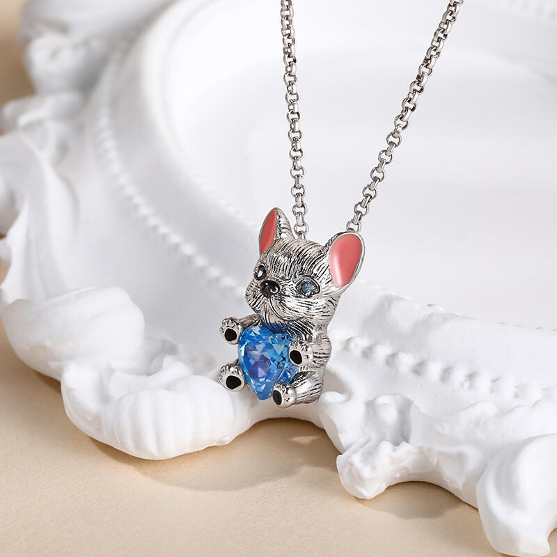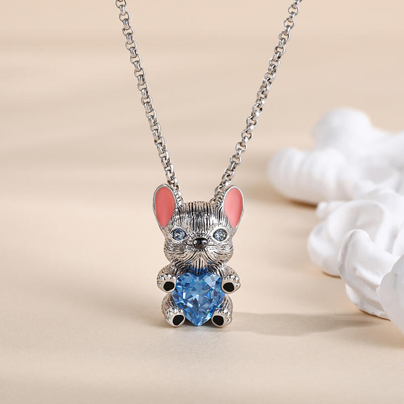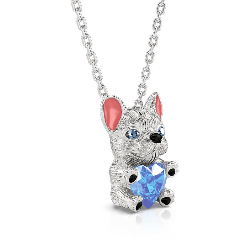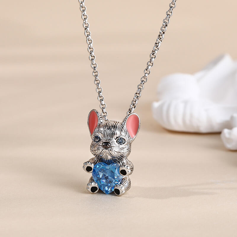 جوليا Hug Me قلادة القلب "البلدغ الفرنسي الذكي" من الفضة الاسترليني